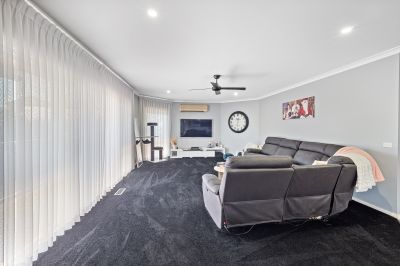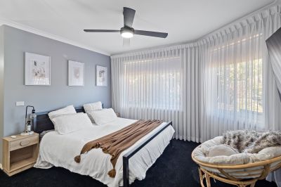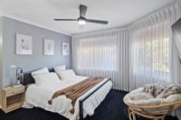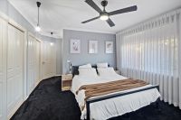 - The master bedroom boasts built-in wardrobes, a ceiling fan, and plush carpeting, overlooks the established front gardens and is serviced by a spacious ensuite complete with an oversized shower, toilet, and IXL heating / lighting