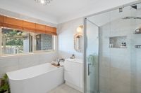 - The three remaining bedrooms feature built in robes and are serviced by an updated family bathroom featuring a luxurious bathtub, a sleek shower with a convenient built-in nook for toiletries, and a stylish basin with ample storage