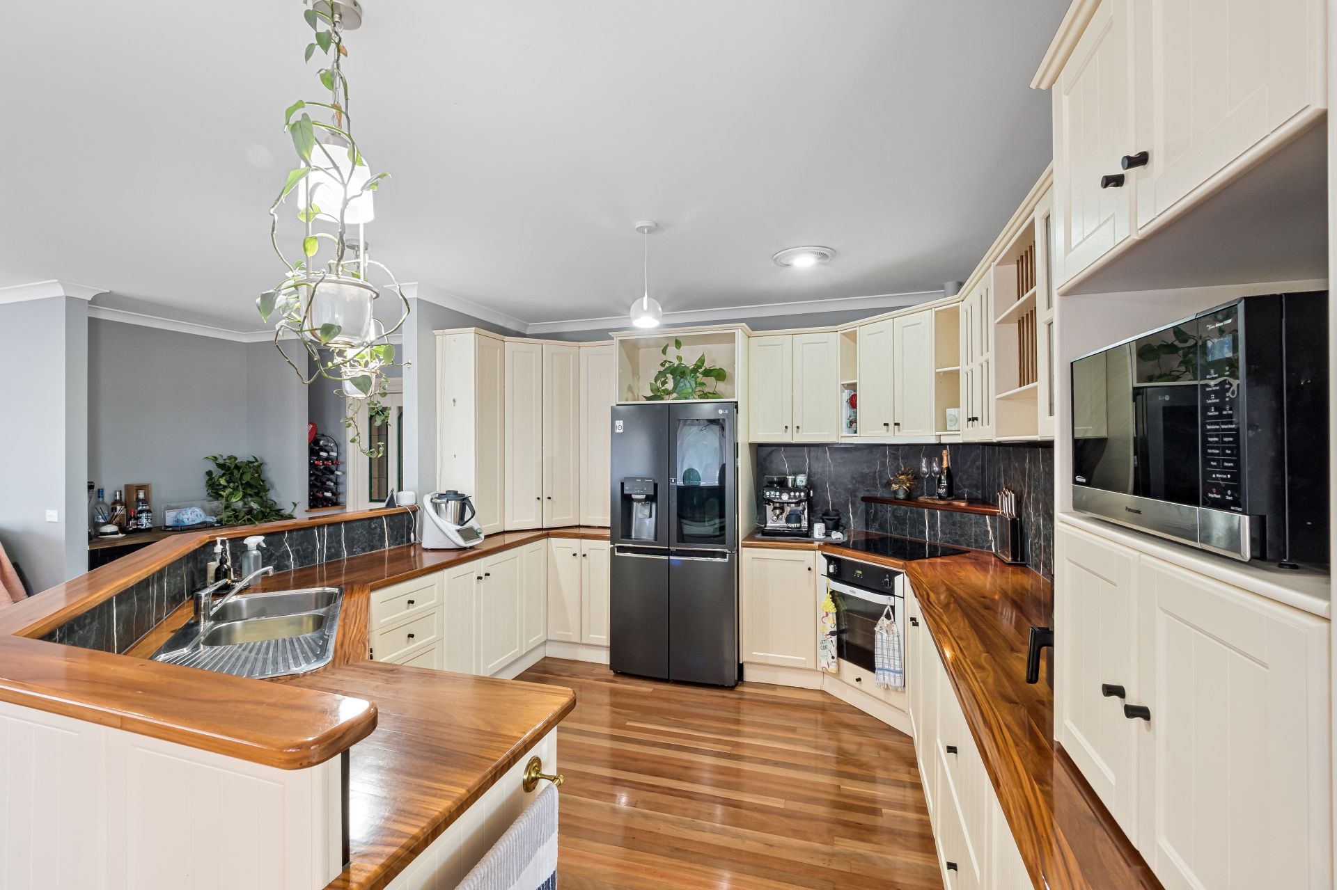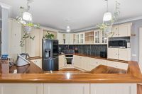 - The well-designed U-shaped kitchen offers generous bench space, plumbing for the fridge, a 600mm oven, and plenty of upper cupboards while also incorporating a built in pantry and dishwasher