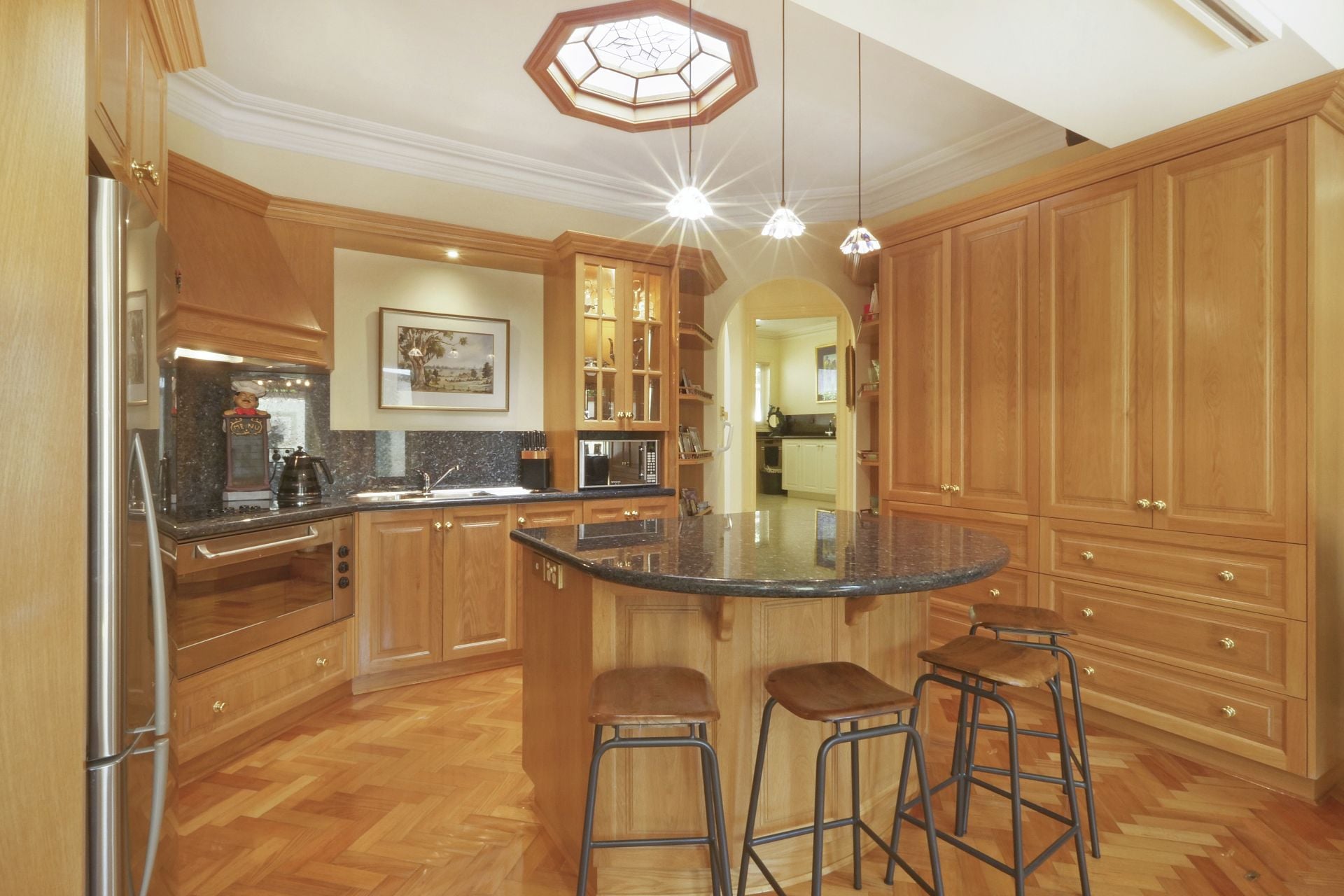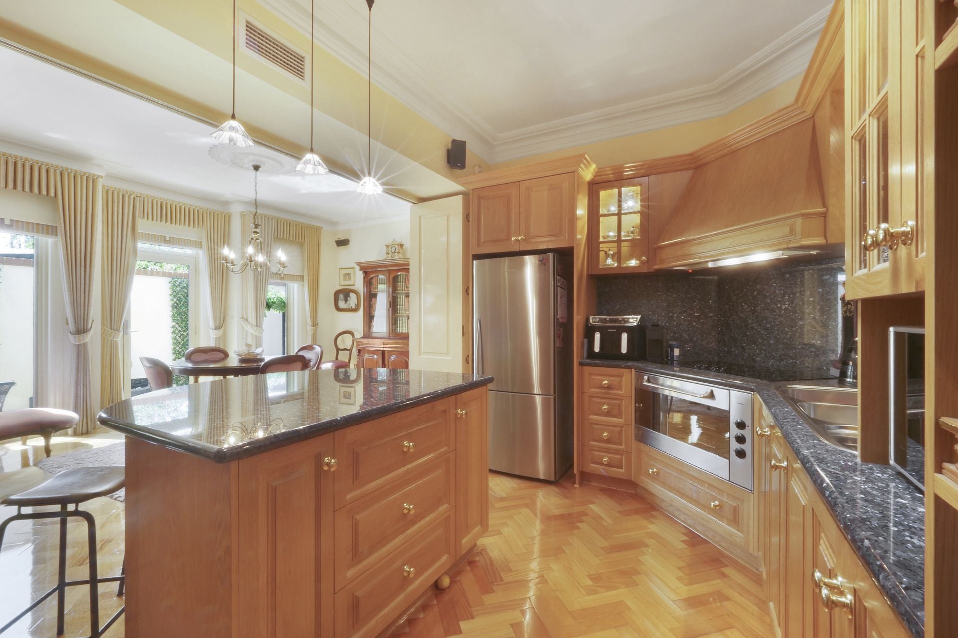 - At the centre, the state of the art granite kitchen is a true showpiece featuring quality appliances, electric cooktop, dishwasher, expansive island bench and extensive cabinetry. Designed for both everyday functionality and sophisticated entertaining, this space exemplifies the quality of build and finish carried throughout the residence and can be closed off from the dining & lounge via timber concertina doors.