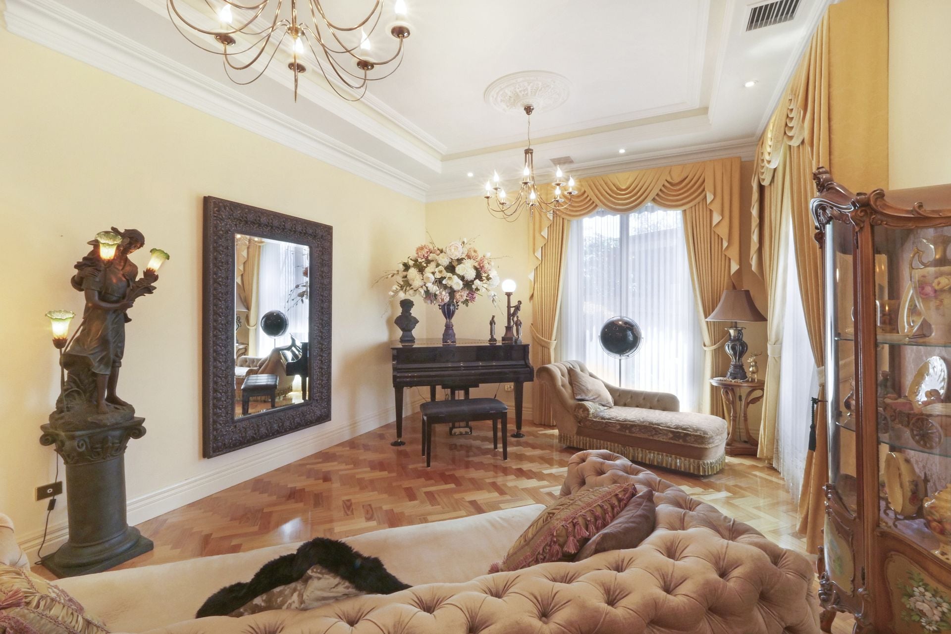 From the moment you step inside, the home reveals its unique, free flowing layout. Thoughtfully designed to create distinct yet connected living zones that enhance both privacy and entertaining. High ceilings adorned with intricate cornices and ceiling roses elevate the sense of space, while stunning parquetry flooring adds warmth, character and timeless appeal throughout.