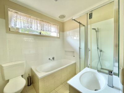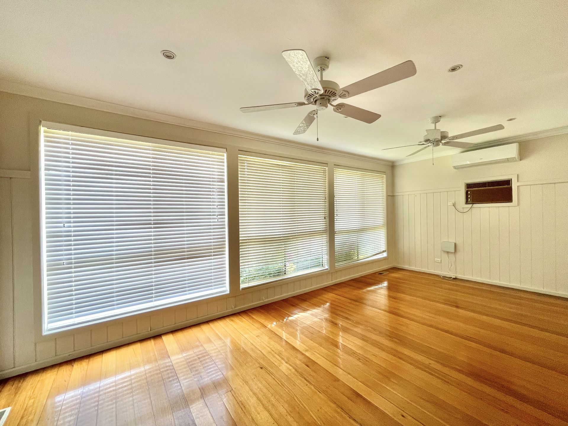 - Light-filled open plan living/kitchen with polished timber floorboards, split system, ceiling fans plus gas central heating