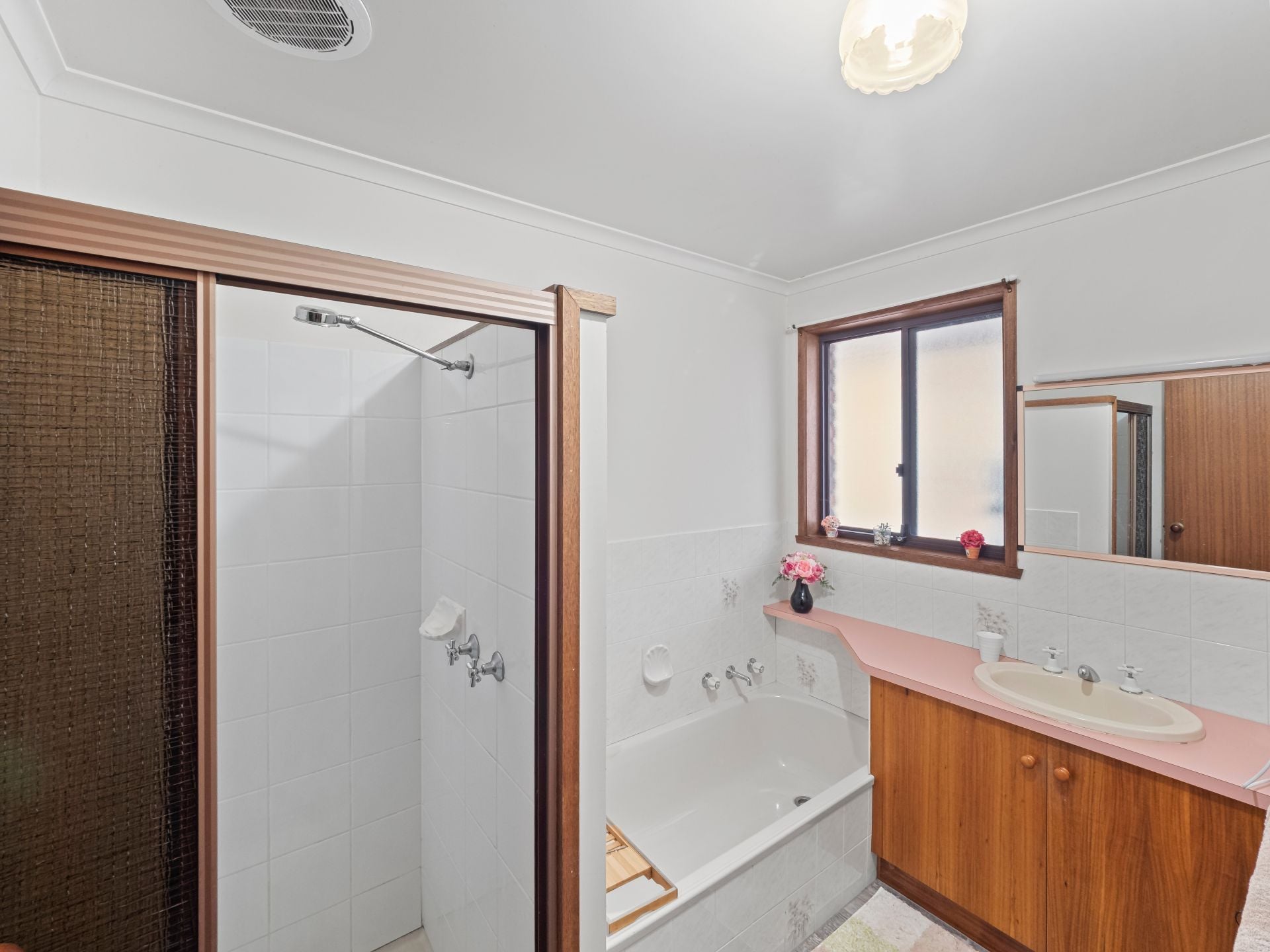 - A well designed family bathroom includes a step in shower, separate bath, and a spacious vanity with plenty of bench space plus a separate toilet adds everyday convenience.
