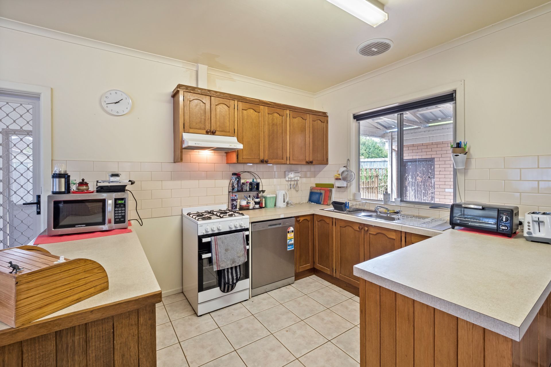- Kitchen includes gas cooking, built in pantry, good bench space and ample storage while incorporating dining