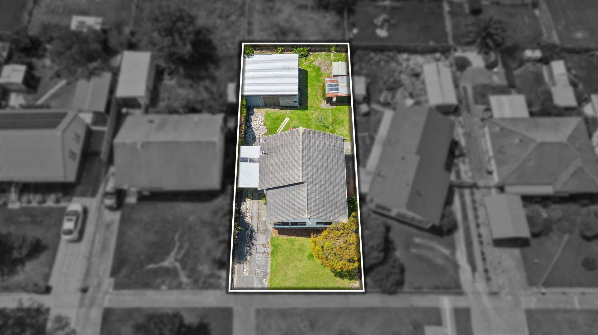 - Single carport, large rear brick garage, plus garden shed for extra storage