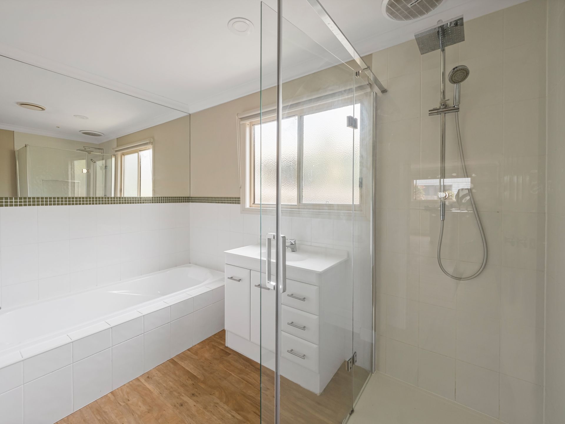 - Family bathroom with large shower and full bath