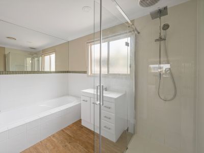 Each of the four bedrooms come complete with built-in robes and ceiling fans, making it ideal for growing families or shared living arrangements. The central family bathroom includes a full-sized bath and an oversized walk-in shower, while gas central heating throughout the home ensures comfort during the cooler months.