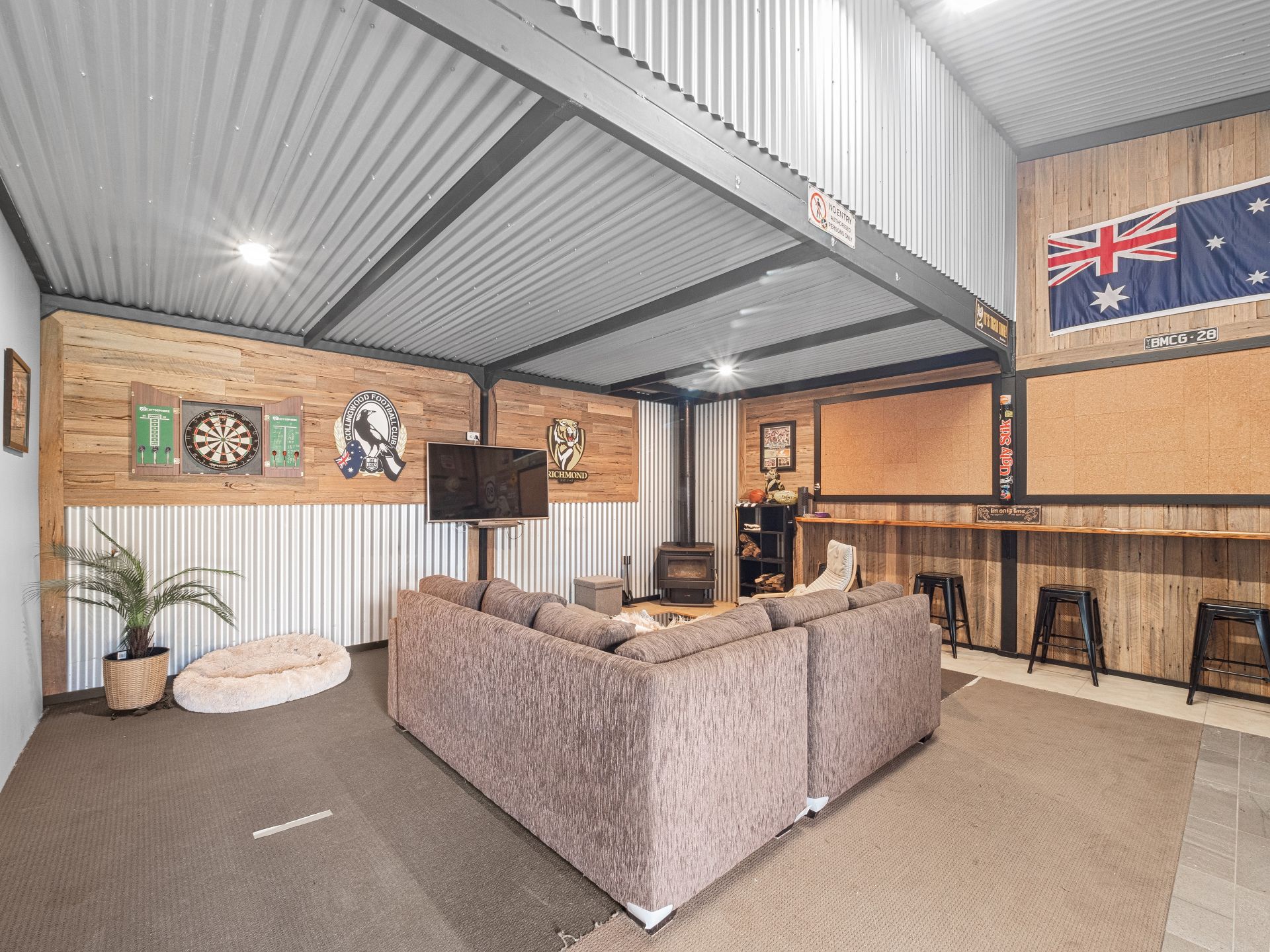 - Rounding it all off is the ultimate man cave, complete with wood fire, bar, and mezzanine storage, creating the perfect retreat or entertaining zone.